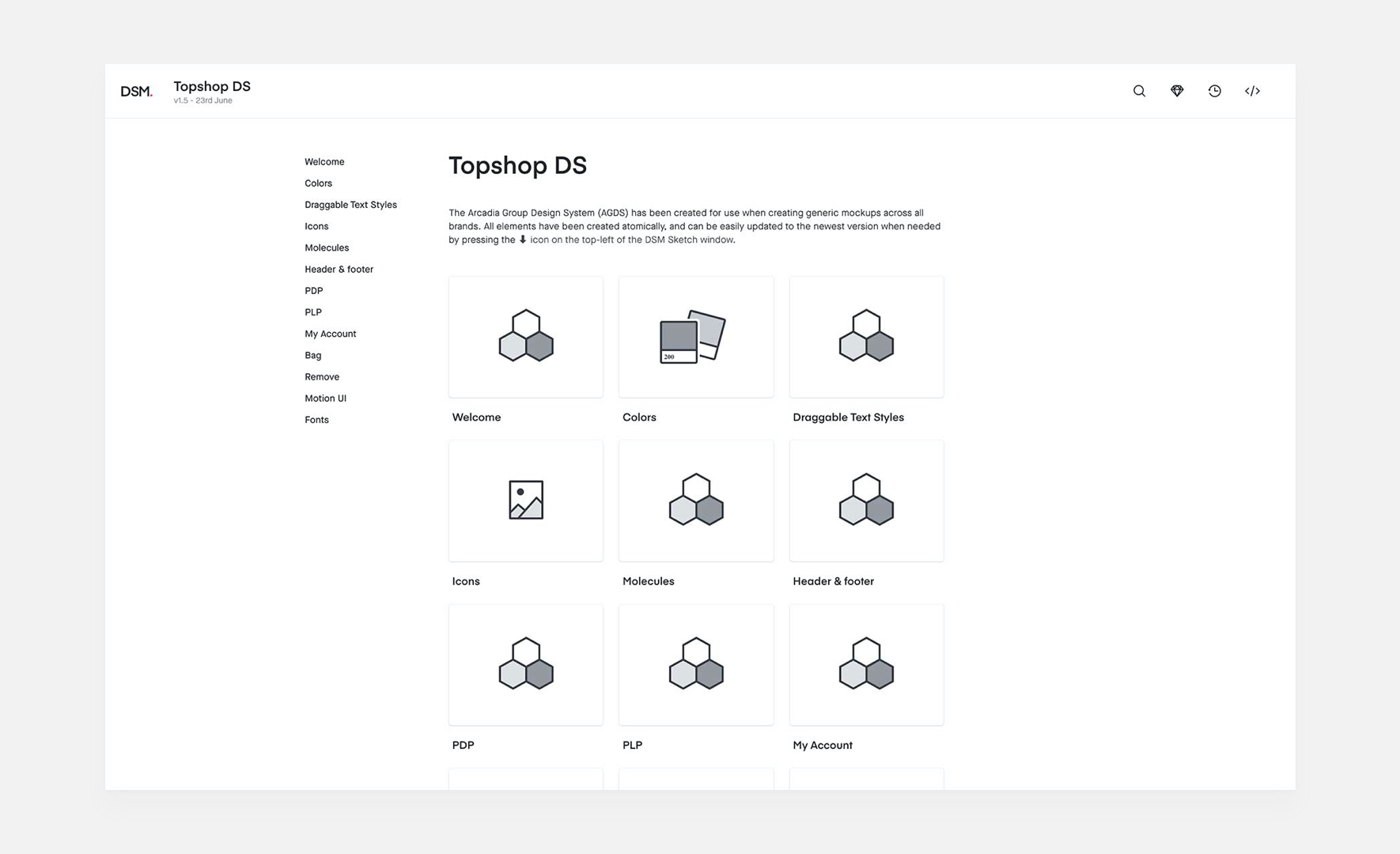 Solution Using Sketch and InVision DSM, design systems and style guides for all the Arcadia brands were compiled using existing elements taken from the live sites. This enabled rapid prototyping using the Craft drag & drop design system plug-in, automatic updates to designs, and efficient collaborations with stakeholders and development teams.