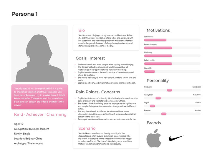 User Personas A valuable tool in the UX design process is the user persona. This is a fictional user based on research, created to remind designers that they are making something for a specific target group. Background information of who they are and details about products or services they’re interested in is provided. Personas combined with real user data help to steer design decisions and the layout of key features.