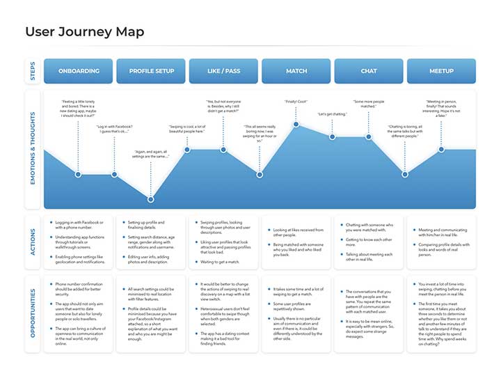 User Journey Map This helps to visualise the flow of how the user will move from one page to the next. For example, what information should be presented and what kind of button should appear.
